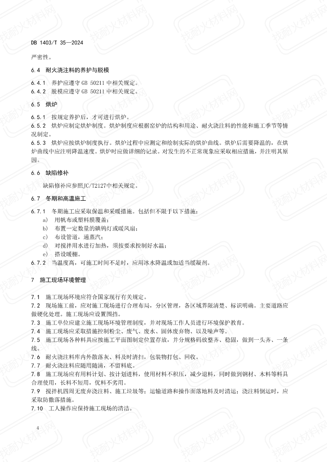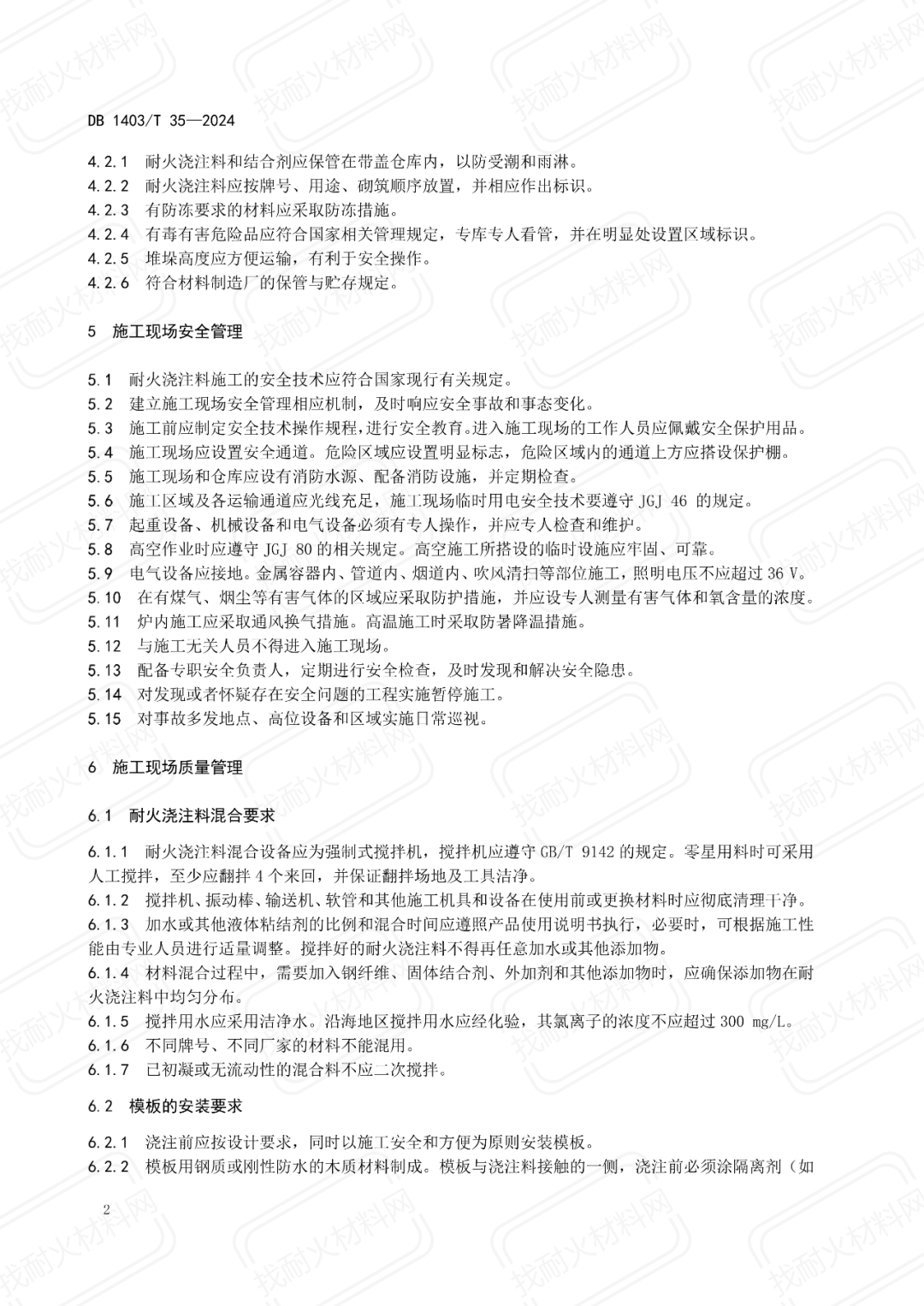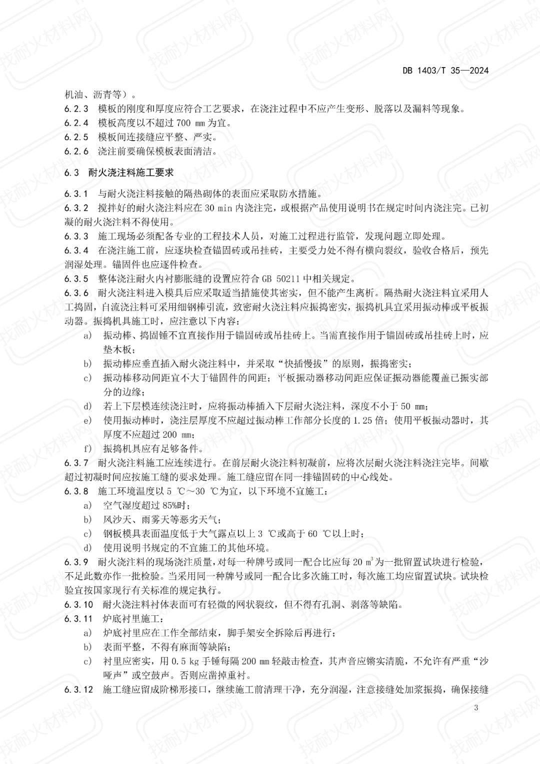 【地方標準】DB1403/T 35-2024耐火澆注料施工現(xiàn)場管理規(guī)范