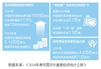 中國是吸引外資的大國,也是對外投資大國。2024年中國對外直接投資流量為1922億美元,連續(xù)13年列全球前三。隨著產(chǎn)業(yè)結(jié)構(gòu)升級,高新技術(shù)產(chǎn)品、高端裝備、綠色低碳產(chǎn)品成為中國制造“出?!毙略鲩L點。中國企業(yè)“出?!背掷m(xù)向新向綠,“中國投資”展現(xiàn)出強大的韌性和活力。