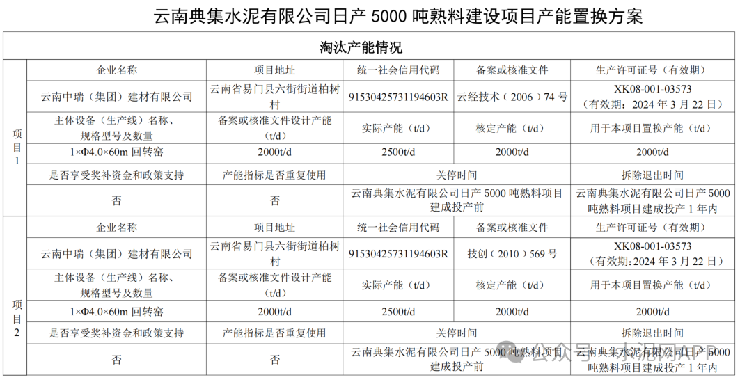 云南典集水泥有限公司申請撤銷“云南典集水泥有限公司日產(chǎn)5000噸熟料建設(shè)項目產(chǎn)能置換方案”。按照原計劃,該企業(yè)擬建一條5000t/d熟料生產(chǎn)線,退出產(chǎn)能來自云南中瑞(集團)建材有限公司2條2000t/d、元江縣永發(fā)水泥有限公司1000t/d、祥云縣建材(集團)有限責(zé)任公司1000t/d、云南省活發(fā)集團劉總旗水泥有限公司2500t/d(用于本項目250t/d)共計5條生產(chǎn)線。