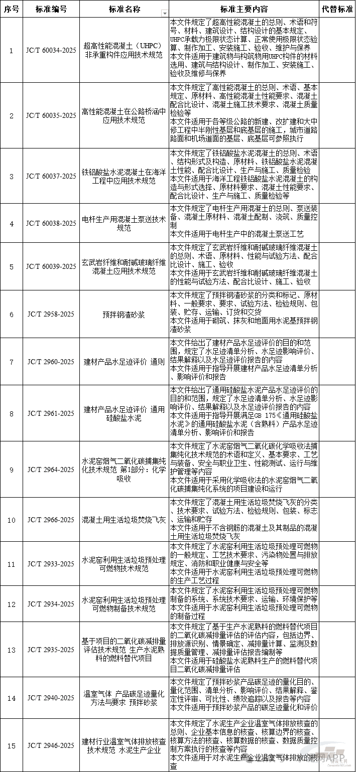 公示名單顯示,在本次公示的117項(xiàng)行業(yè)標(biāo)準(zhǔn)中,含建材行業(yè)標(biāo)準(zhǔn)34項(xiàng),其中15項(xiàng)與水泥、混凝土、砂漿相關(guān)。