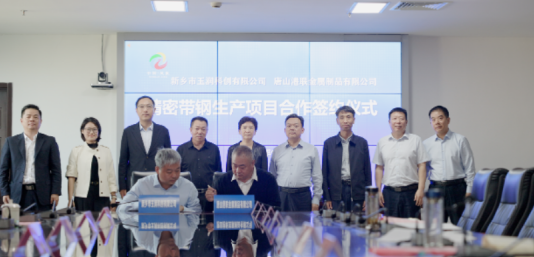 9月29日上午,新鄉(xiāng)市玉潤科創(chuàng)有限公司與唐山港聯(lián)金屬制品有限公司合作的港聯(lián)精密帶鋼生產(chǎn)項(xiàng)目簽約儀式在鳳泉區(qū)舉行。唐山港聯(lián)金屬制品有限公司董事長孟德龍、新鄉(xiāng)市玉潤科創(chuàng)有限公司總經(jīng)理王玉軍、新鄉(xiāng)農(nóng)商行鳳泉支行行長賈萬丁及區(qū)直相關(guān)部門負(fù)責(zé)人出席活動(dòng),區(qū)委書記楊潔主持儀式,區(qū)長丁文廣、副區(qū)長耿建偉參加。