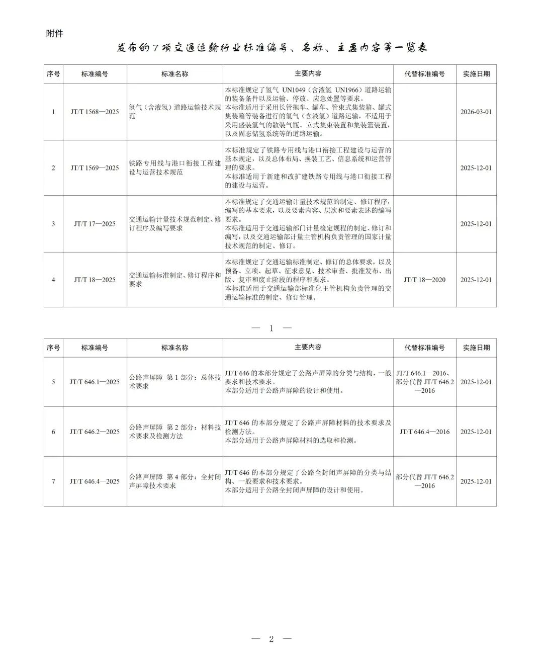 附件:發(fā)布的7項(xiàng)交通運(yùn)輸行業(yè)標(biāo)準(zhǔn)編號(hào)、名稱(chēng)、主要內(nèi)容等一覽表