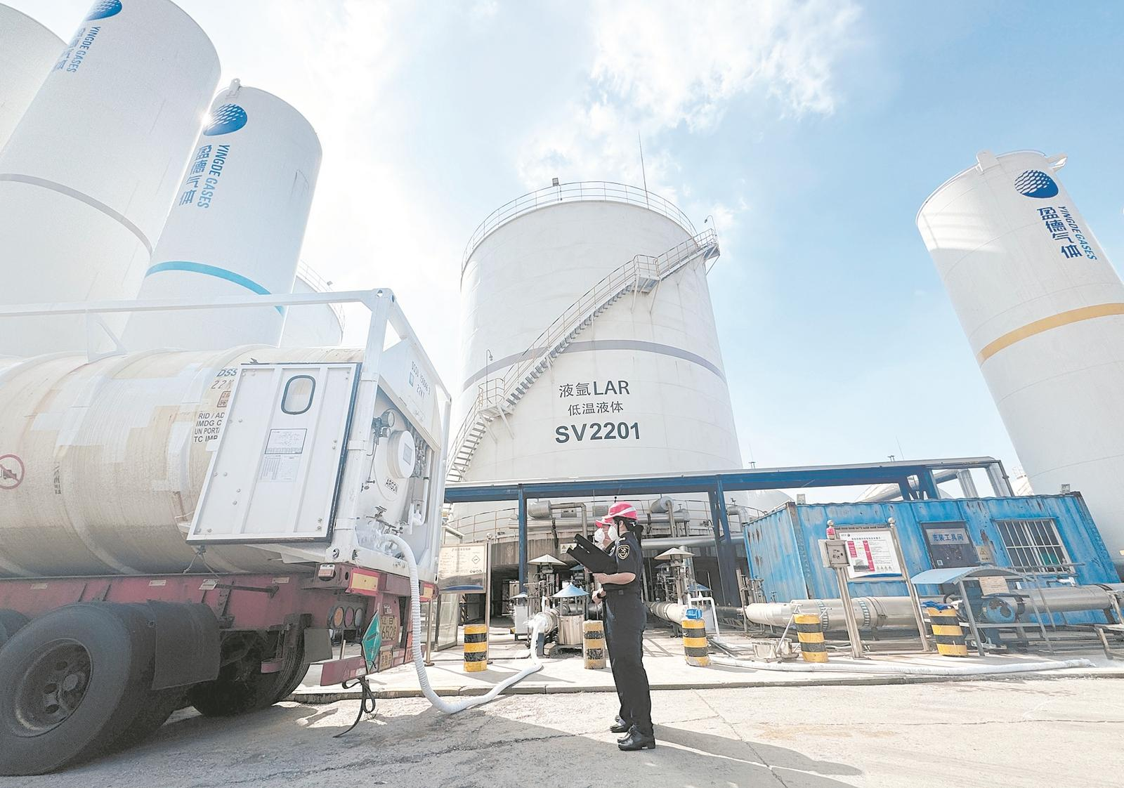 營(yíng)口海關(guān)關(guān)員對(duì)出口液氬進(jìn)行現(xiàn)場(chǎng)查驗(yàn)。