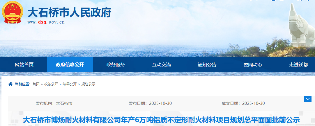 大石橋市博煬耐火材料有限公司年產(chǎn)6萬噸鋁質(zhì)不定形耐火材料項目規(guī)劃總平面圖批前公示 ?