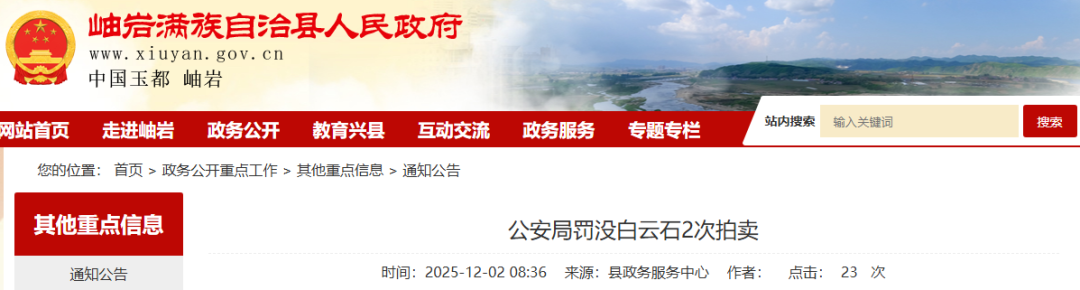 受委托,岫巖滿族自治縣產(chǎn)權(quán)交易中心有限責(zé)任公司(鞍山市金鳴拍賣有限公司)定于2025年12月9日上午10時在中拍平臺依法對下列標(biāo)的進(jìn)行第二次拍賣: